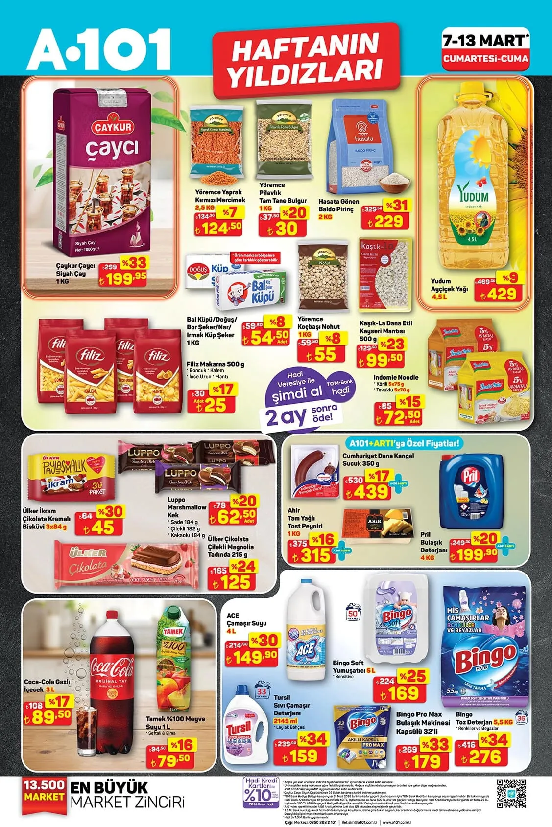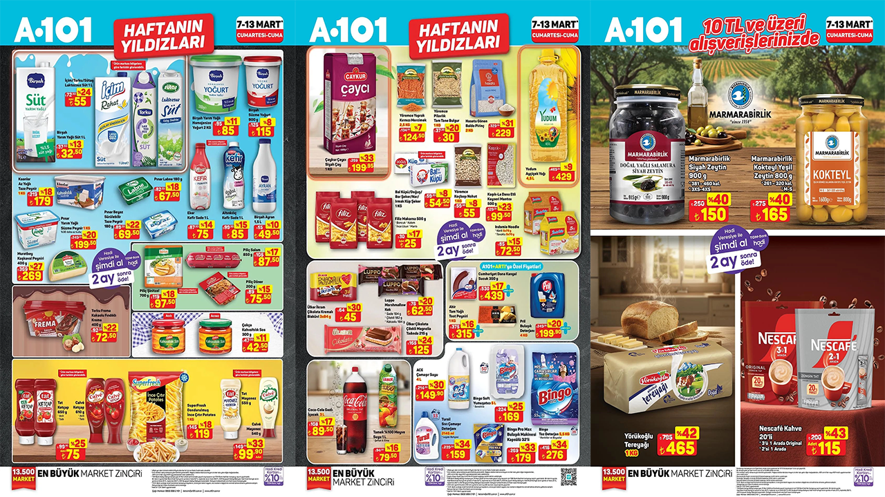 A101’in 13 Mart tarihine kadar raflarda bulunduracağı ürünler ve fiyatları yayınlanan kataloğa göre şöyle: