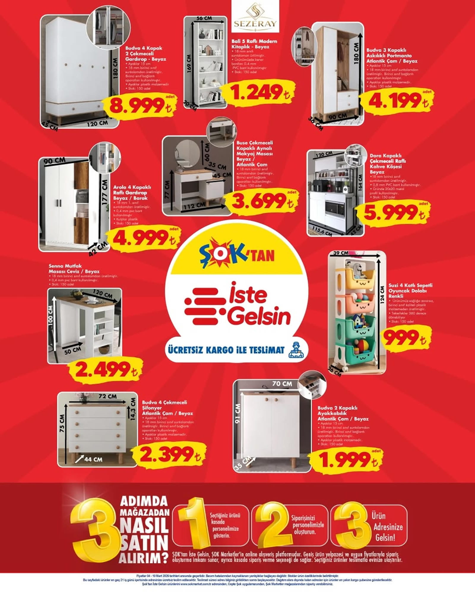 ŞOK’un 4 Mart tarihinden itibaren satışa sunduğu ürünler ve fiyatları yayınlanan kataloğa göre şöyle: